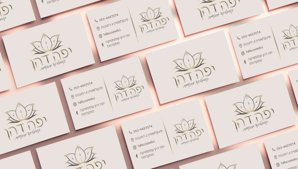 יפה דהן- קוסמטיקה מתקדמת מיתוג ליפה דהן- קוסמטיקאית שרצתה מיתוג עדין ונשי.המיתוג כולל עיצוב לוגו ועיצוב כרטיס ביקור.