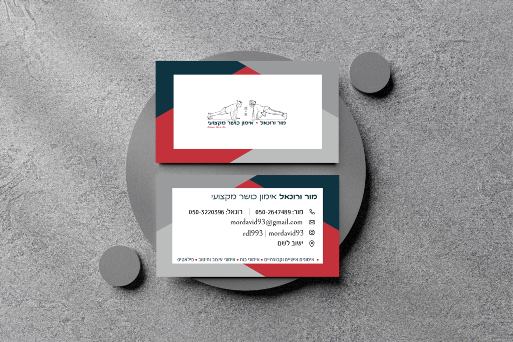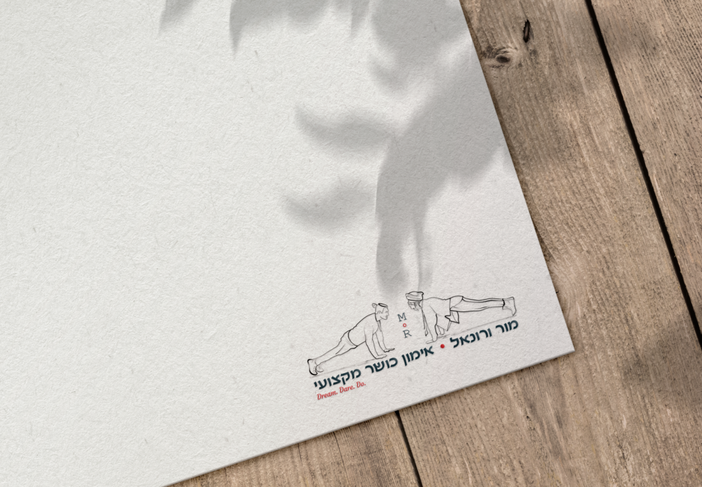 מור ורונאל- אימון כושר מקצועי לוגו מאויר של הזוג המתוק מור ורונאל שפתחו עסק לאימון כושר.המיתוג כולל עיצוב כרטיסי ביקור